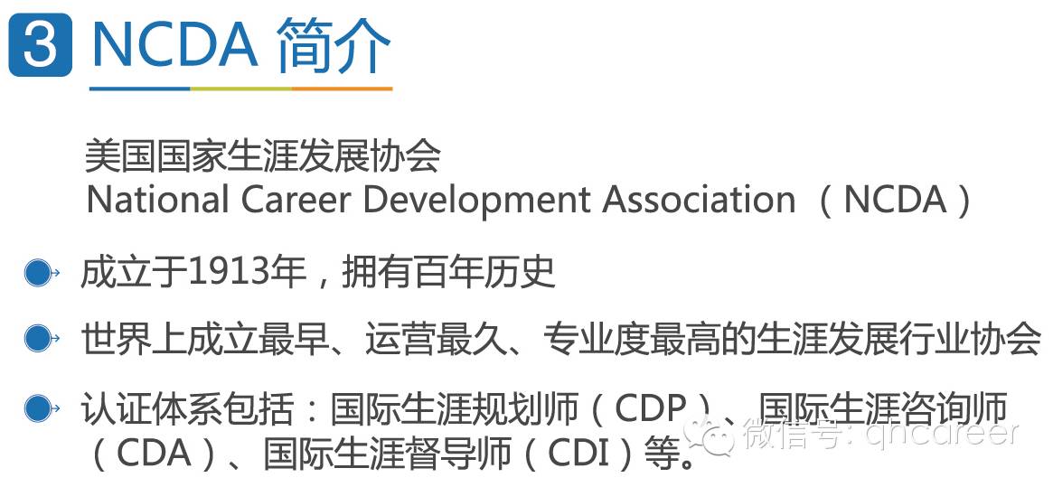 美国国家生涯发展协会(NCDA)是世界上成立最早、运营最久、专业度最高的生涯发展行业协会。