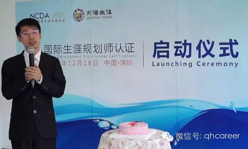NCDA中国首期国际生涯规划师认证启动仪式由前海生涯副总经理李超主持。前海生涯CEO刘志强博士、NCDA认证CDM邬荣霖博士(中国台湾)、民生银行深圳某行长等分别代表活动主办方、讲师、学员发言,并启动首期“国际生涯规划师”认证。